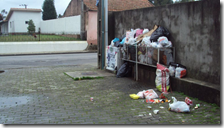 A Junta de Freguesia já foi avisada do problema, mas continua sem solução à vista e os cães vádios continuam a rebentar sacas à procura de restos de comer e depois deixam ficar o local como documentam as fotos.